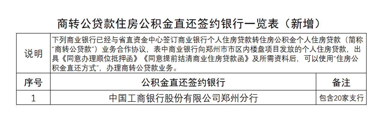 河南省直住房公积金关于新增“商转公贷款”签约银行的通知