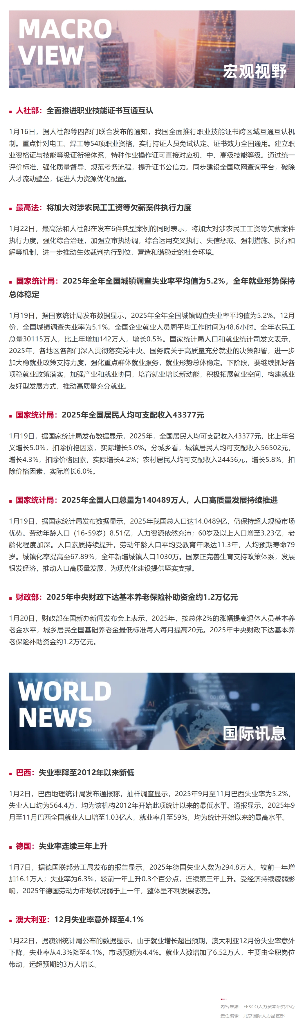 1月人力资源行业资讯