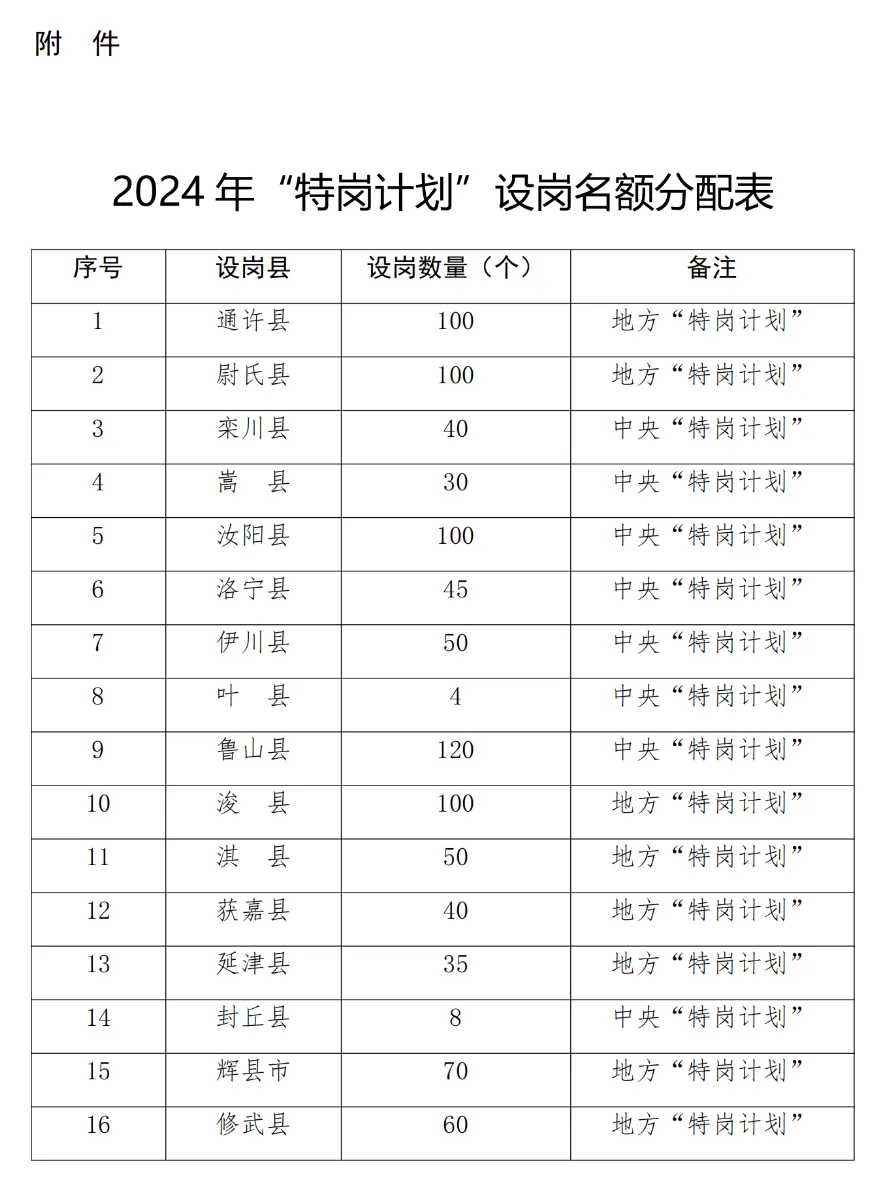 15.请各地紧密结合乡村学校实际需求,严格按照2024年“特岗计划”实施政策精神,抓紧拟定分学段、分学科招聘岗位,于6月14日前提交至河南省特岗教师招聘管理系统。