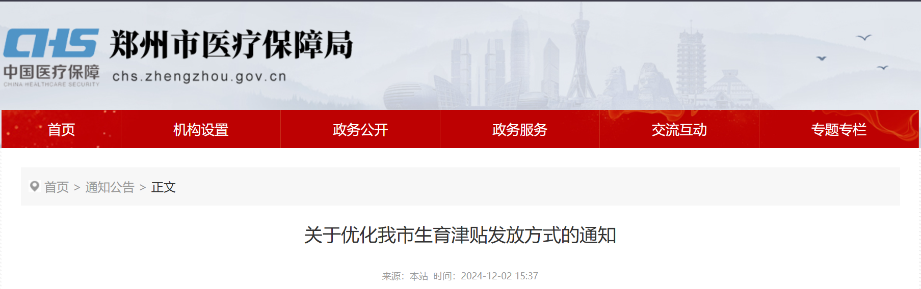 1.自2024年12月1日起,参加郑州市生育保险的女职工生育或终止妊娠的,由“原则上由用人单位向医疗保险经办机构申领”调整为“对符合规定的生育津贴自动生成申报数据,医疗保险经办机构审核后,一次性发放至参保女职工个人银行账户”。