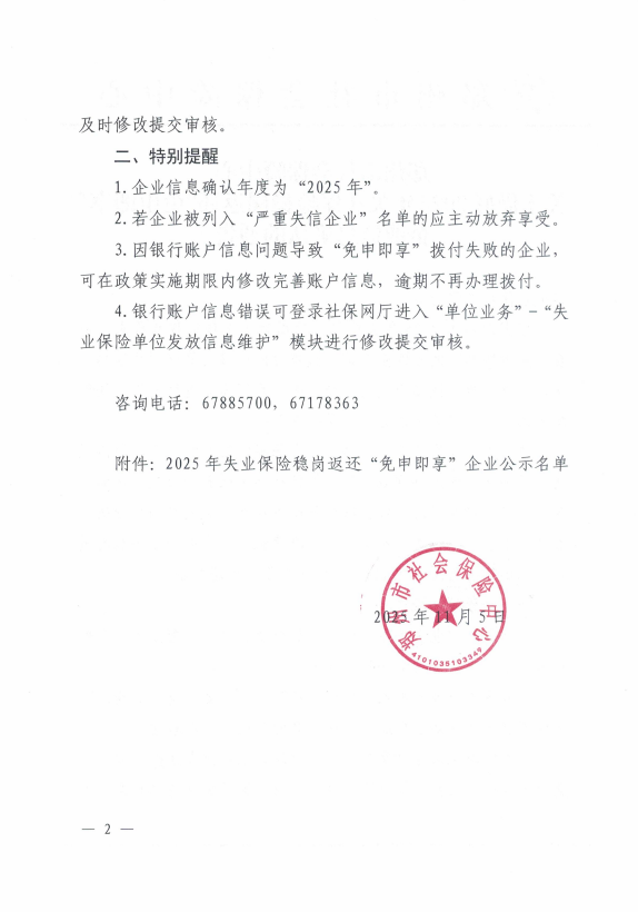 郑州市社会保险中心关于做好2025年失业保险稳岗返还“免申即享’企业信息确认的通告
