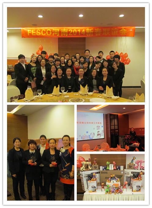 2014年1月26日,FESCO河南召开2013工作会议暨2014年会。FESCO河南全体员工参加了此次年会。首先祝莉总经理做了2013年的工作总结及来年工作计划,她在报告中肯定了我司在2013年取得的成绩,并对每一位员工在过去一年的辛勤工作表达了真挚的谢意,同时也对2014年的工作进行了安排部署。随后,财务经理巩桂红宣读《FESCO河南2013年度评优奖励通报》,对2013年取得突出成绩的团队及个人颁发了团队奖、优秀员工、优秀服务奖等奖项若干,顺利的完成了2013年度的工作会议。